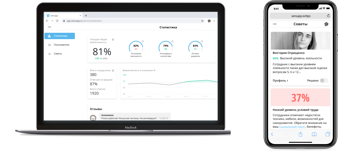 - улучшить общую вовлечённость персонала на +18% по сравнению с базовым периодом.После внедрения SensApp компании-партнёры смогли:
