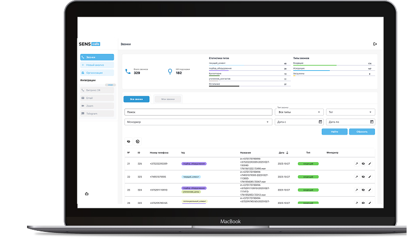 Система ИИ обработки звонков Sens Calls