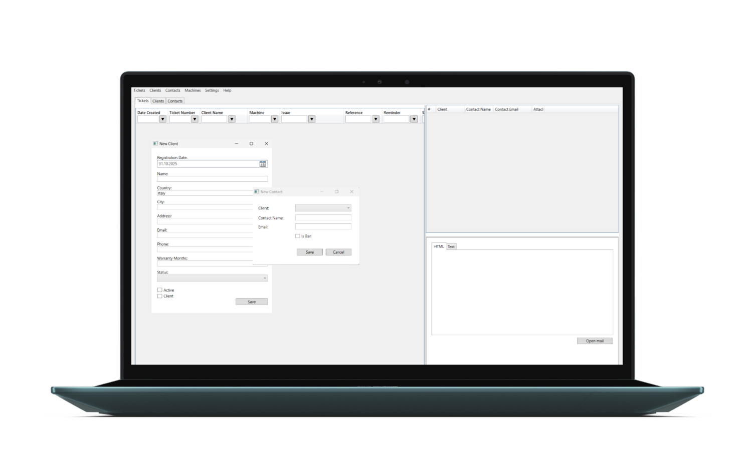 Была создана кастомная тикет-система, полностью интегрированная с корпоративной почтой и CRM-клиентской базой.